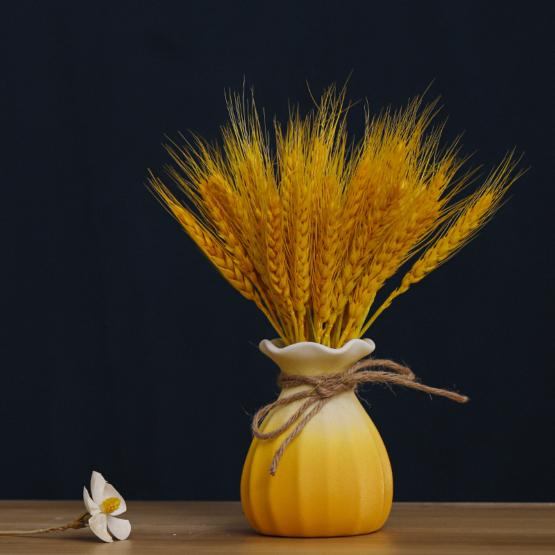 麦穗干花满天星花束客厅插花陶瓷小花瓶ins风桌面电视柜装 饰摆件