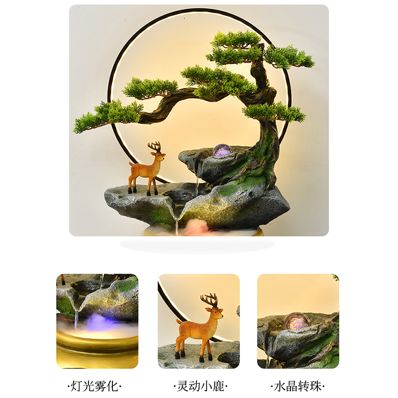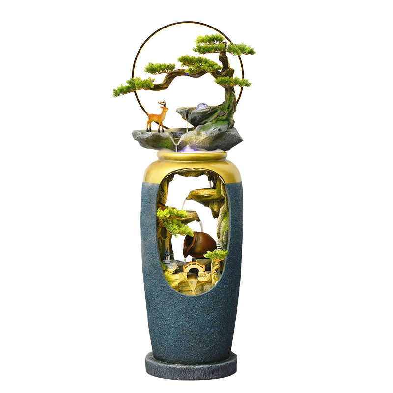 新中式 假山流水喷泉循环水客厅电视柜旁玄关花瓶落地摆件造景