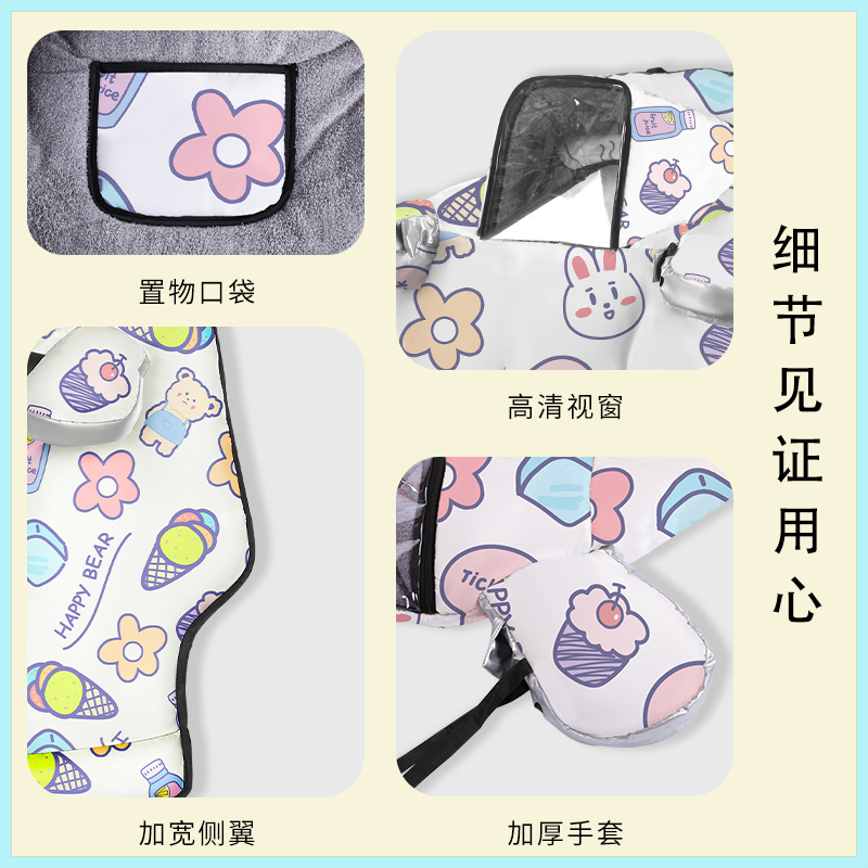 通用 电瓶摩托防风防水罩四季 电动车挡风被冬季 加绒加厚全包斗篷式