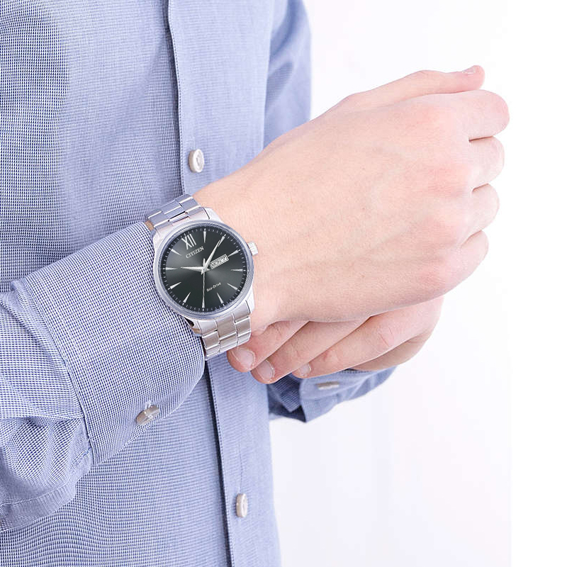 西铁城手表男简约商务休闲钢带光动能防水腕表BM8550 81E