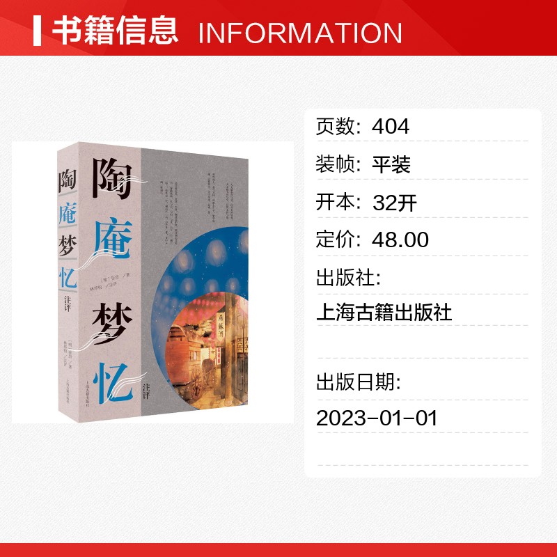 著 文学作品集文学 新华书店正版 陶庵梦忆注评 上海古籍出版 张岱 图书籍 社 明