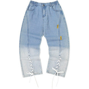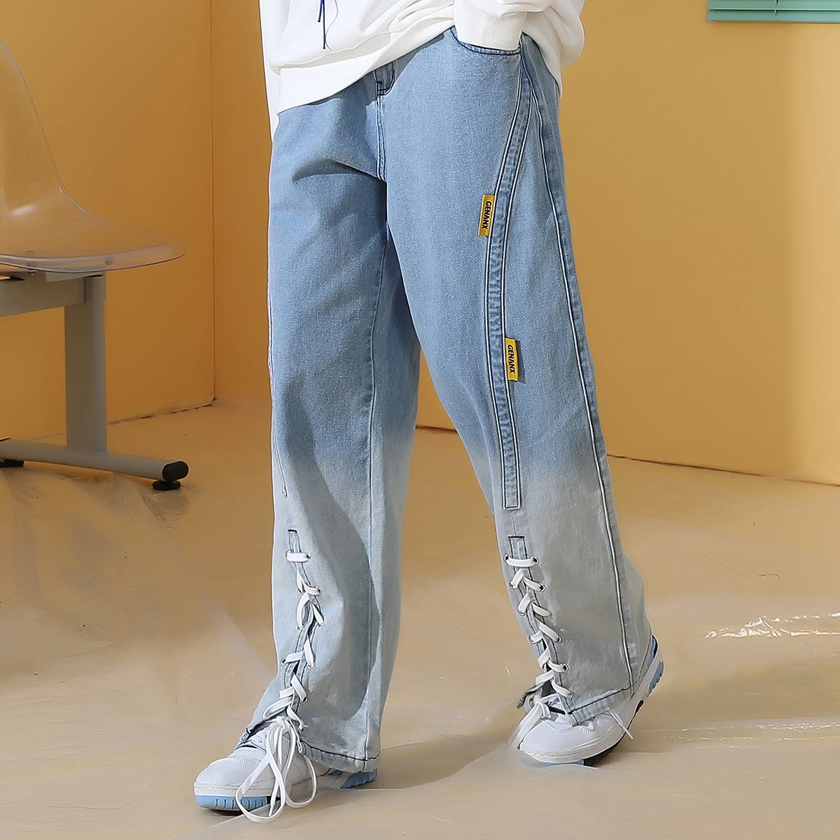 子cleanfit长裤 高街百搭做旧裤 男秋美式 V37复古蓝水洗直筒牛仔裤