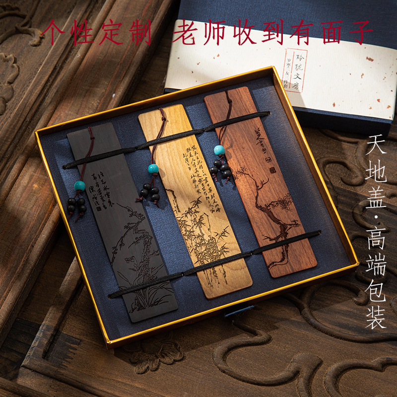 定制刻字红木质书签中国风高档礼盒套装 故宫文创礼品紫檀木学生开学礼物送老外纪念品创意古风特色学生送老师