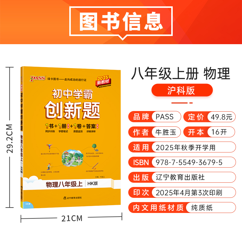沪科版 2025初中学霸创新题物理八年级上下册同步练习册练习题知识讲解pass绿卡图书初二测试试卷必刷题辅导资料天天练同步专项训练