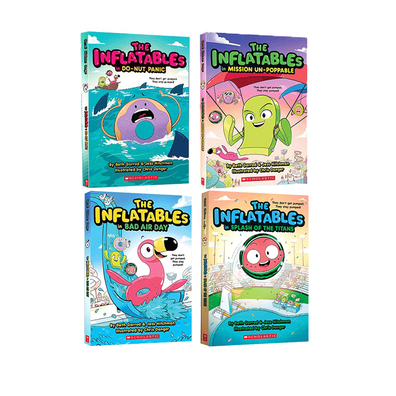 Inflatables 英语课外阅读图像式 充气艇大作战 儿童幽默爆笑漫画绘本图画书 章节小说书 4册 英文原版