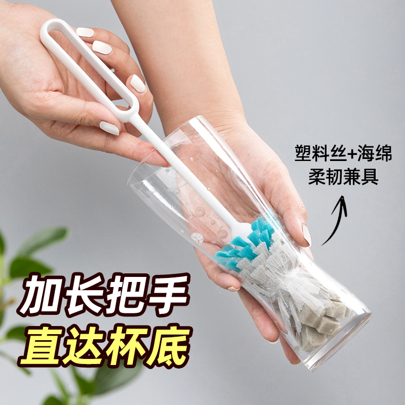 茶花长柄杯刷锅刷家用洗碗洗锅洗杯子清洁刷子长柄刷钢丝球可替换