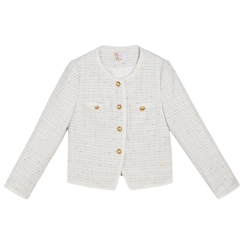 固执春季 复古圆领小香风单排扣纯色短外套女80131DT07774 新款