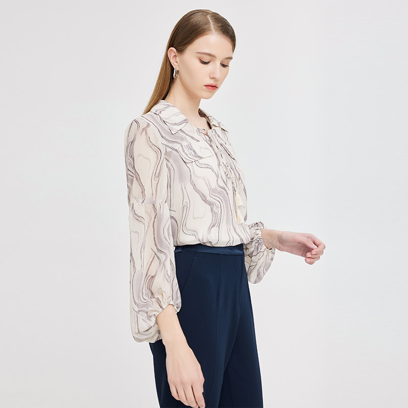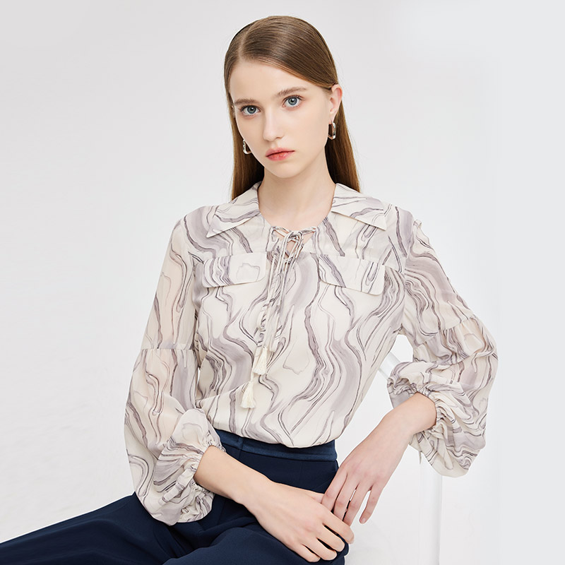 设计感时尚 专柜正品 衬衫 米黄色印花长袖 气质女上衣 马天奴春夏新款