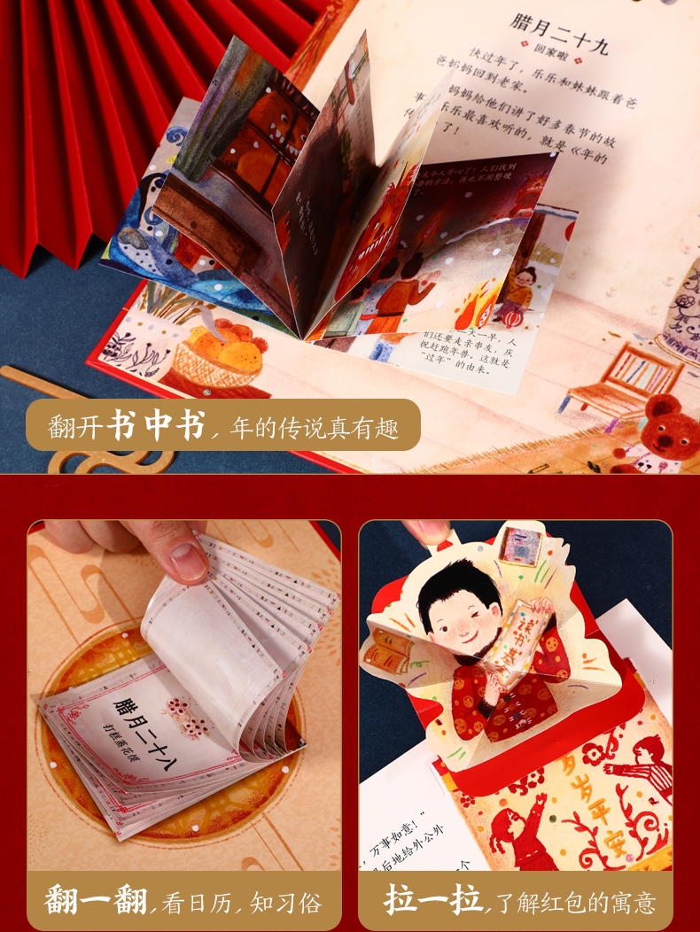 升级版 过年啦 6岁幼儿童3D立体翻翻书籍团圆绘本故事读物新年春节礼物精美礼品欢乐中国年传统节日习俗年货礼包 正版 乐乐趣