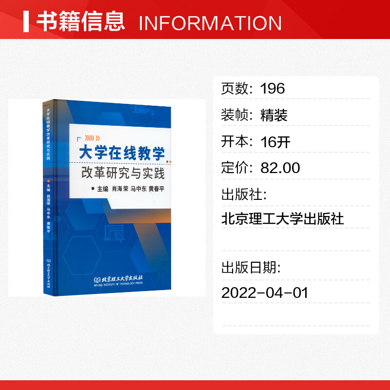 教育普及文教 社 马中东 北京理工大学出版 图书籍 新华书店正版 教育 编 黄春平 肖海荣 大学在线教学改革研究与实践