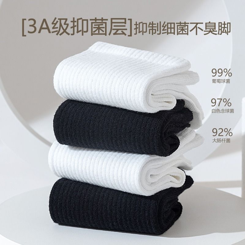 袜子男纯棉女加厚保暖袜长筒袜防臭情侣运动黑白袜中筒抗菌吸汗
