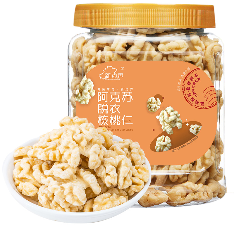 新边界原味脱衣大核桃仁300g新疆特产阿克苏薄皮核桃纸皮坚果零食