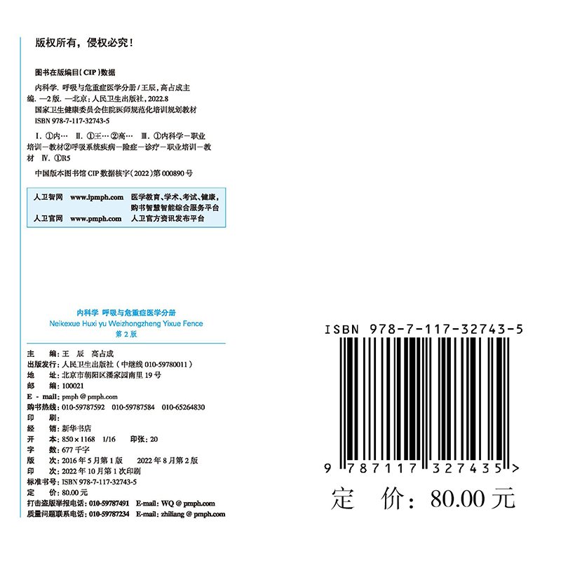 第2版 呼吸与危重症医学分册 配增值 国家卫生健康委员会住院医师规范化培训规划教材王辰 社 现货正版 高占成人民卫生出版 内科学