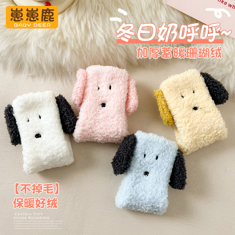 儿童地板袜隔凉加厚加绒珊瑚绒袜子男童秋冬家里睡觉穿家居袜防滑