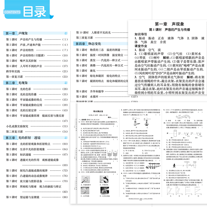 2025新版 同步教材知识考点强化训练习期中末实战巩固提分附答案详解详析测试卷 课时提优计划作业本物理初二八8年级上下册苏科版