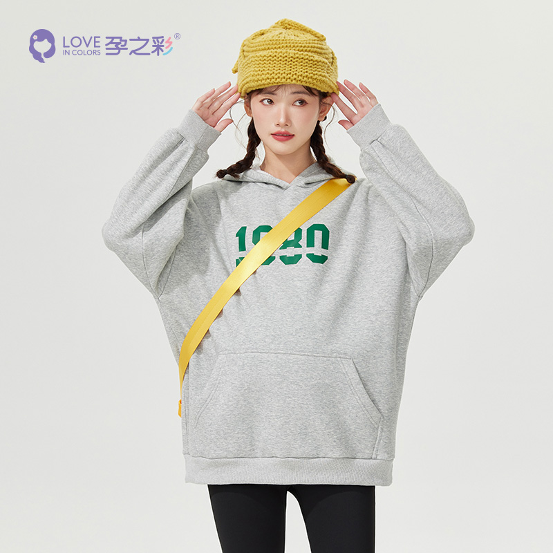 潮流卫衣休闲宽松百搭外穿简约连帽绒衫 孕之彩孕妇上衣秋冬款 时尚