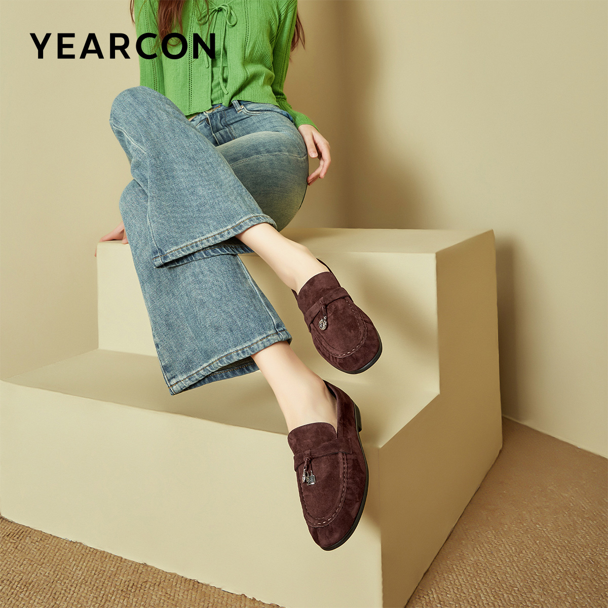 英伦风低跟女士一脚蹬粗跟单鞋 乐福鞋 气质 2025新款 意尔康女鞋