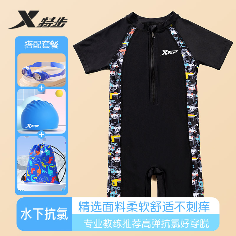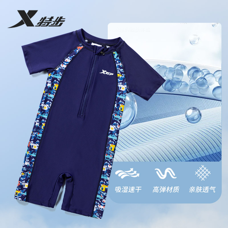 男中大童专业泡温泉游泳装 连体泳裤 冬季 特步儿童泳衣男孩2025新款