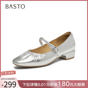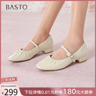 Bata羊皮书玛丽珍女2025复古软底宽楦百搭单鞋 AUO01AQ5