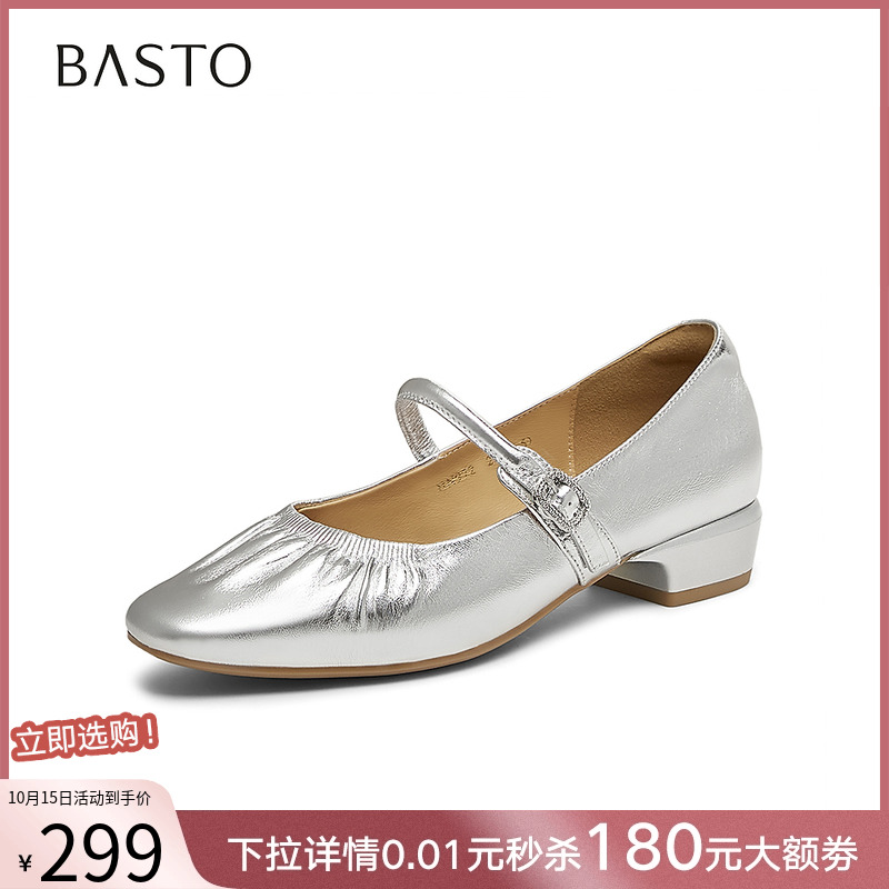 红色玛丽珍鞋 法式 百思图莫奈花园25秋新款 女单鞋 乔欣明星同款
