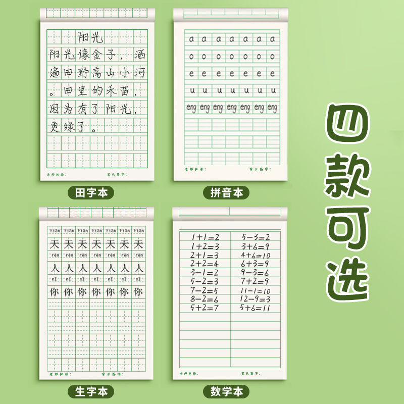 小学生课业本作业本田字格本拼音本全国标准统一田字格簿数学生字练习本教学用本