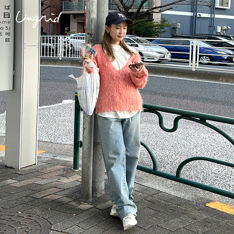 气质拉毛针织套头衫 针织衫 1125126831 V领长袖 Ungrid2025初春新品