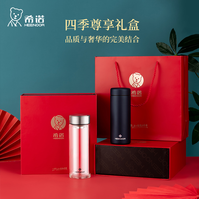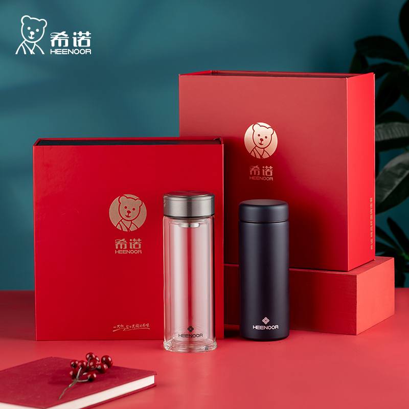 希诺双层玻璃杯保温杯礼盒套装 送礼情侣水杯生日礼物中秋节送老师