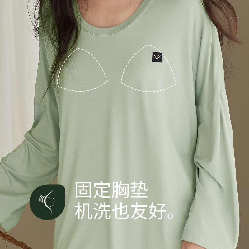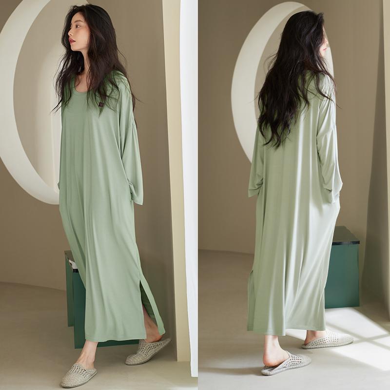 长袖 轩靓 纯棉薄款 睡裙女士春秋季 睡衣夏天家居服超长裙 带胸垫