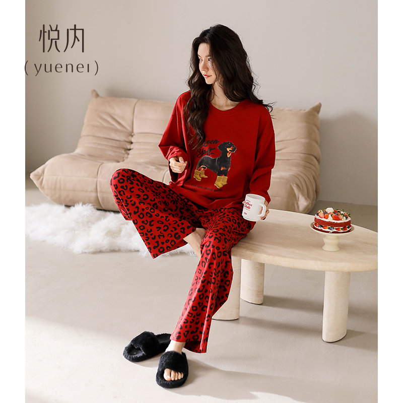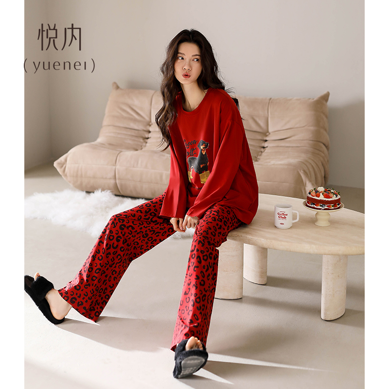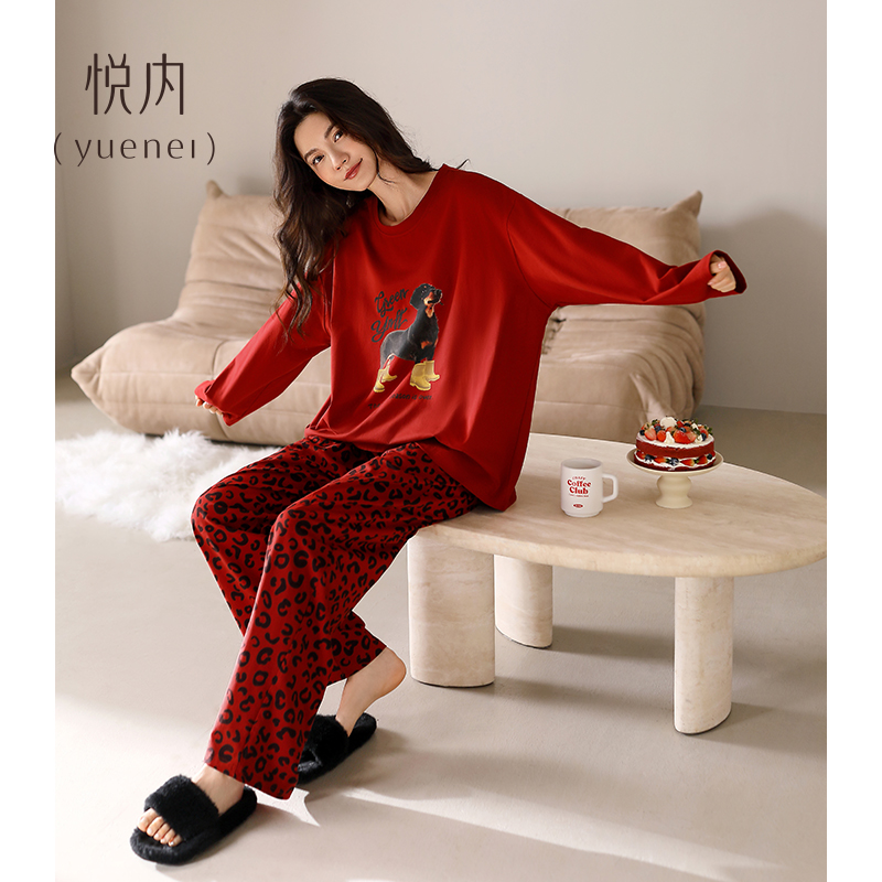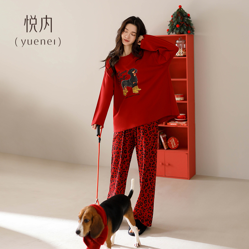 家居服休闲可外穿出门大红色本命年 纯棉长袖 悦内睡衣女春秋款 秋季