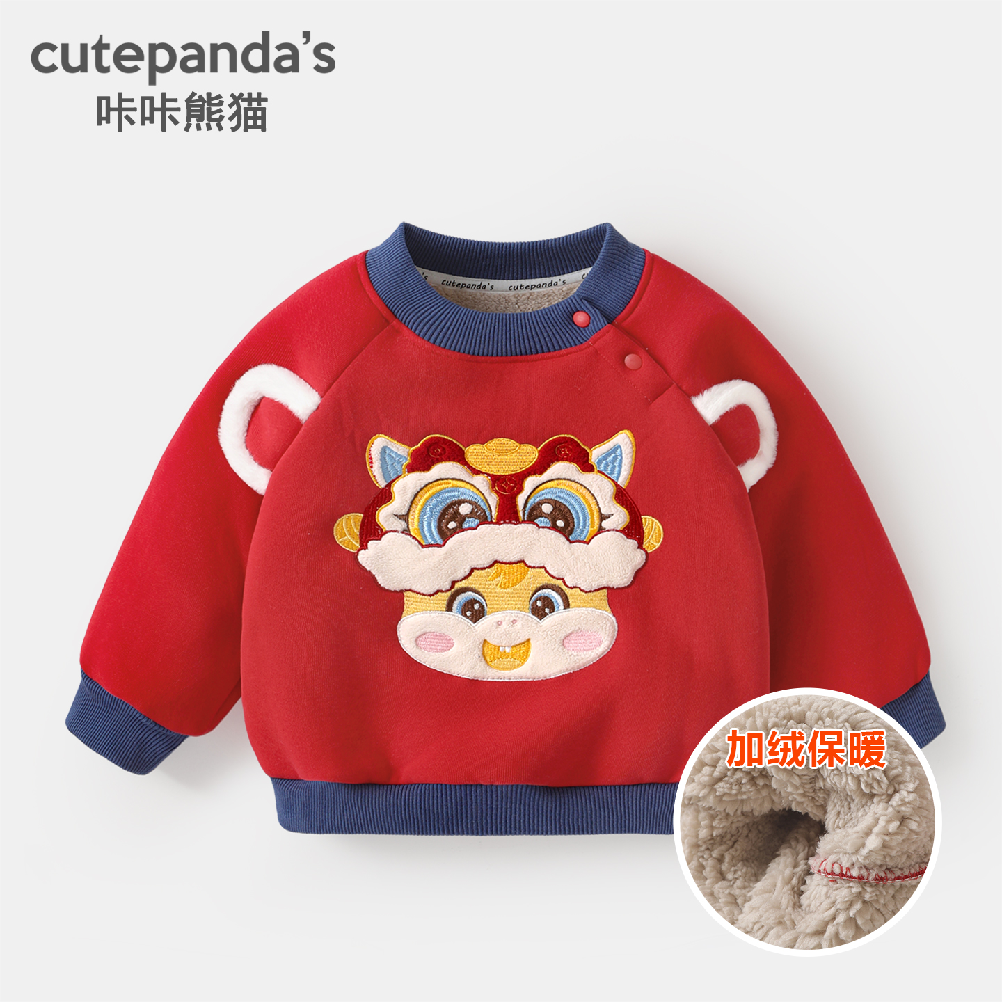 年装 男童拜年服冬季 潮 儿童加厚上衣冬款 咔咔熊猫宝宝加绒卫衣冬装