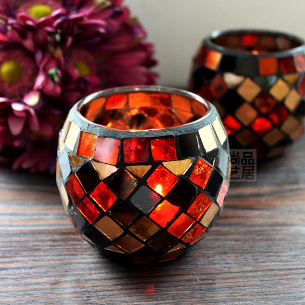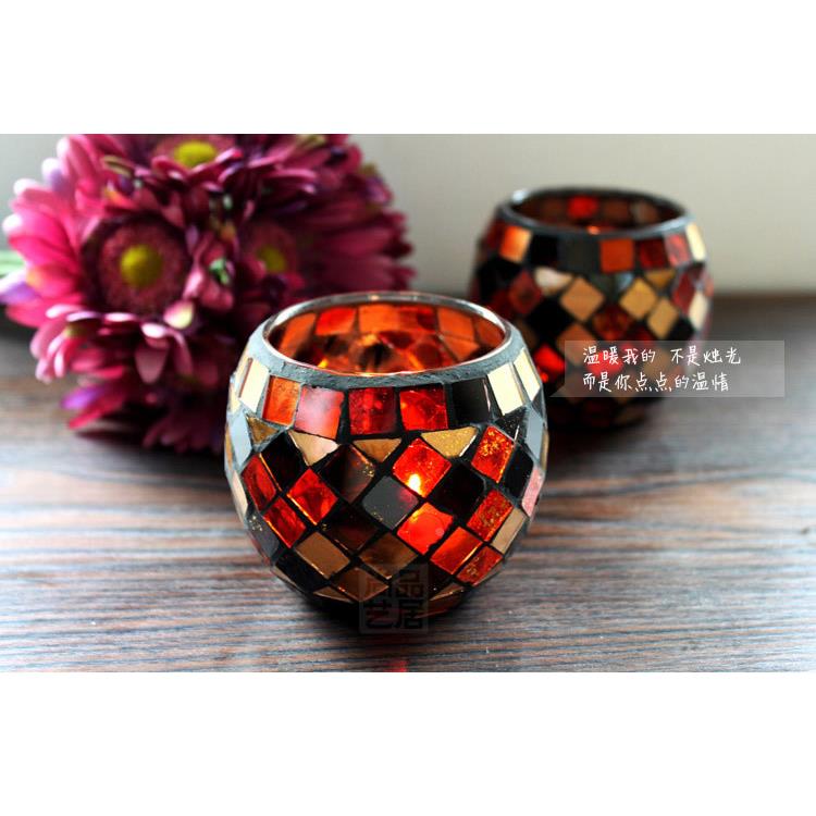 里作 家用复古礼佛蜡烛底座摆件氛围灯 明清玻璃烛台故宫红新中式