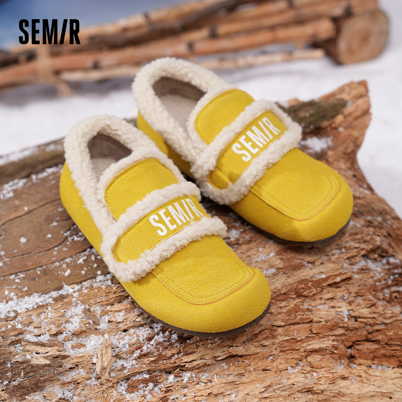 子 羊羔绒保暖加绒一脚蹬乐福勃肯鞋 Semir踩屎感豆豆鞋 女2025冬季