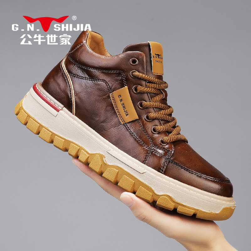 运动鞋 高帮休闲鞋 秋冬新款 子学生厚底男鞋 皮面鞋 征服鸿星尔克板鞋