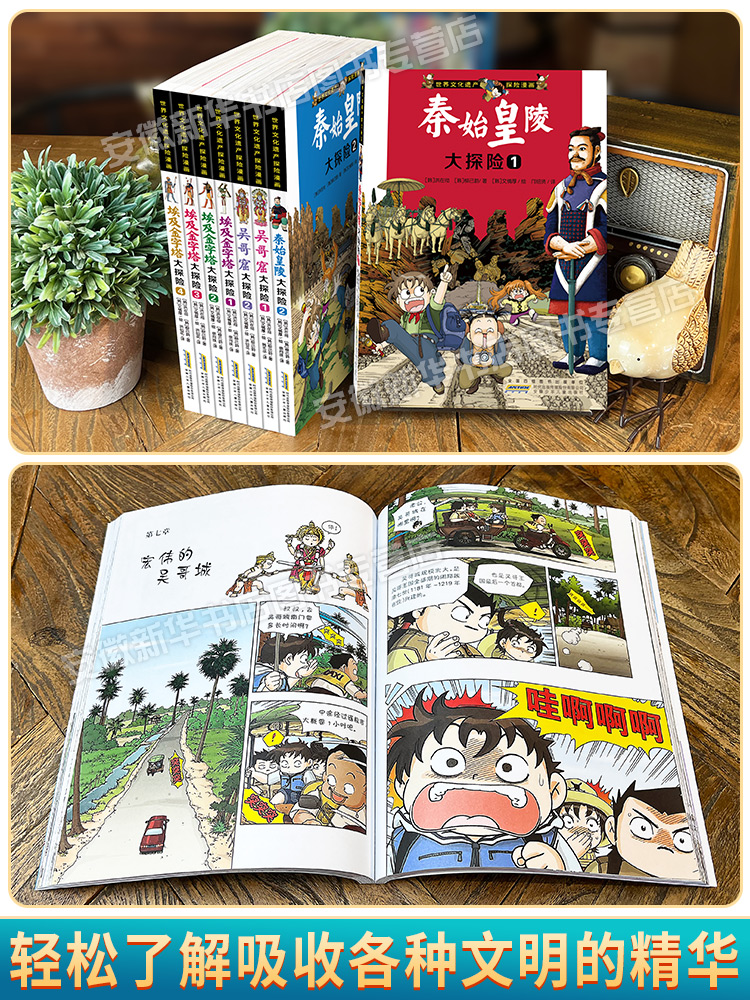 安少 探险故事书科普漫画书三四五六年级中小学生课外阅读正版 世界文化遗产探险漫画系列全8册 埃及金字塔秦始皇陵吴哥窟大探险