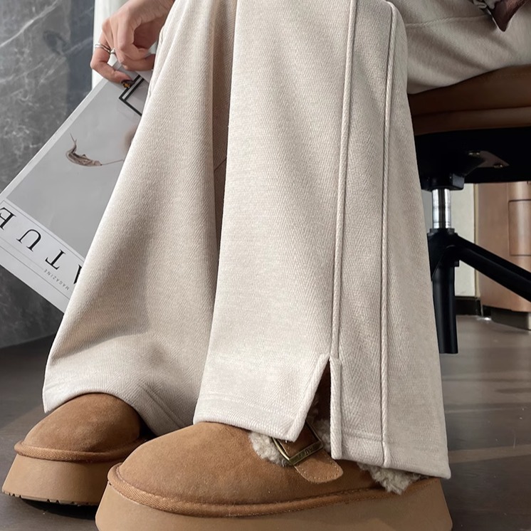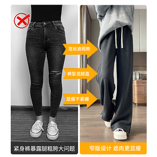 高级宽松bf慵懒垂感直筒加绒休闲阔腿裤 2025新款 子女春秋季 糯米裤