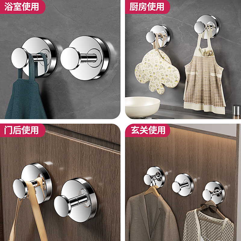 不锈钢免打孔挂钩强力承重粘胶挂衣钩子厨房浴室门后粘贴壁挂粘钩