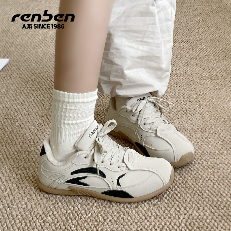 女款 休闲运动鞋 2025秋季 棕色内增高设计感小众时尚 新款 人本德训鞋