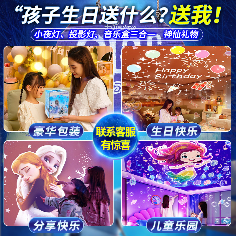 爱莎艾莎公主星空灯投影仪卧室儿童玩具女孩子女童八音盒生日礼物