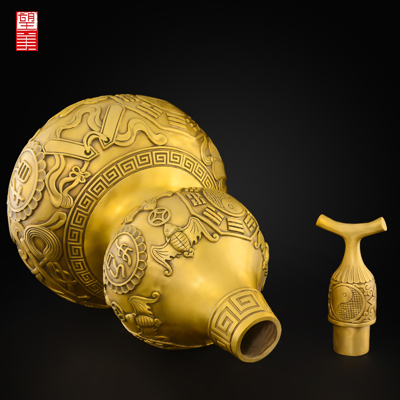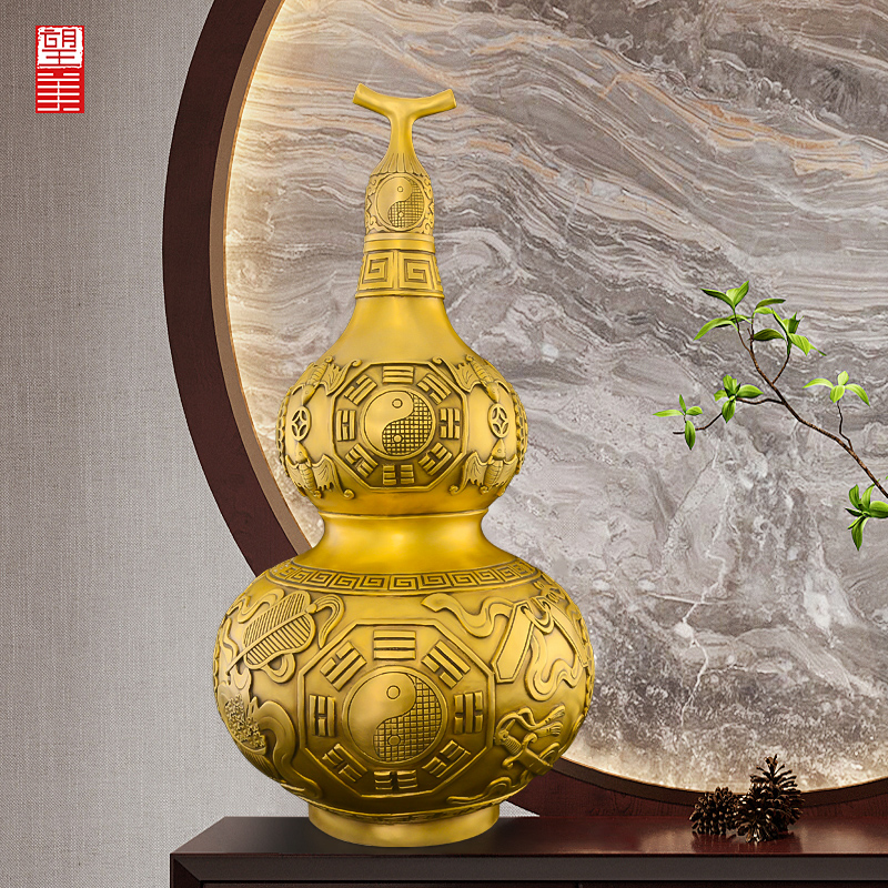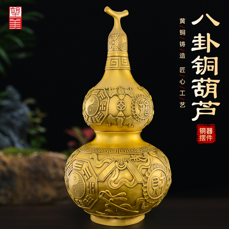 铜葫芦客厅摆件天医铜葫芦镇黄铜开盖空心八卦葫芦宅玄关工艺品