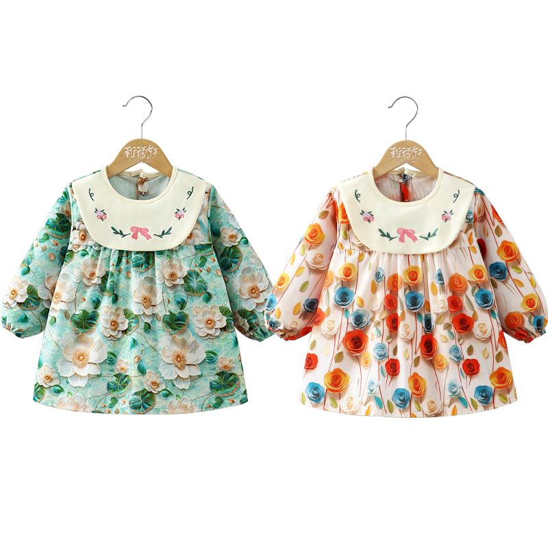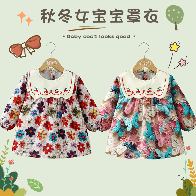 女宝宝罩衣秋冬外穿公主裙儿童反穿衣吃饭防水防脏婴儿围兜饭兜
