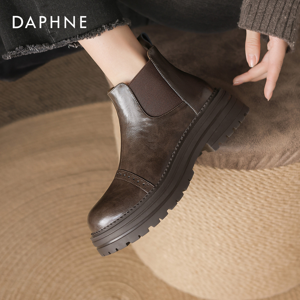达芙妮切尔西短靴女春款 踝靴瘦瘦靴子女春秋英伦风马丁靴 2025新款