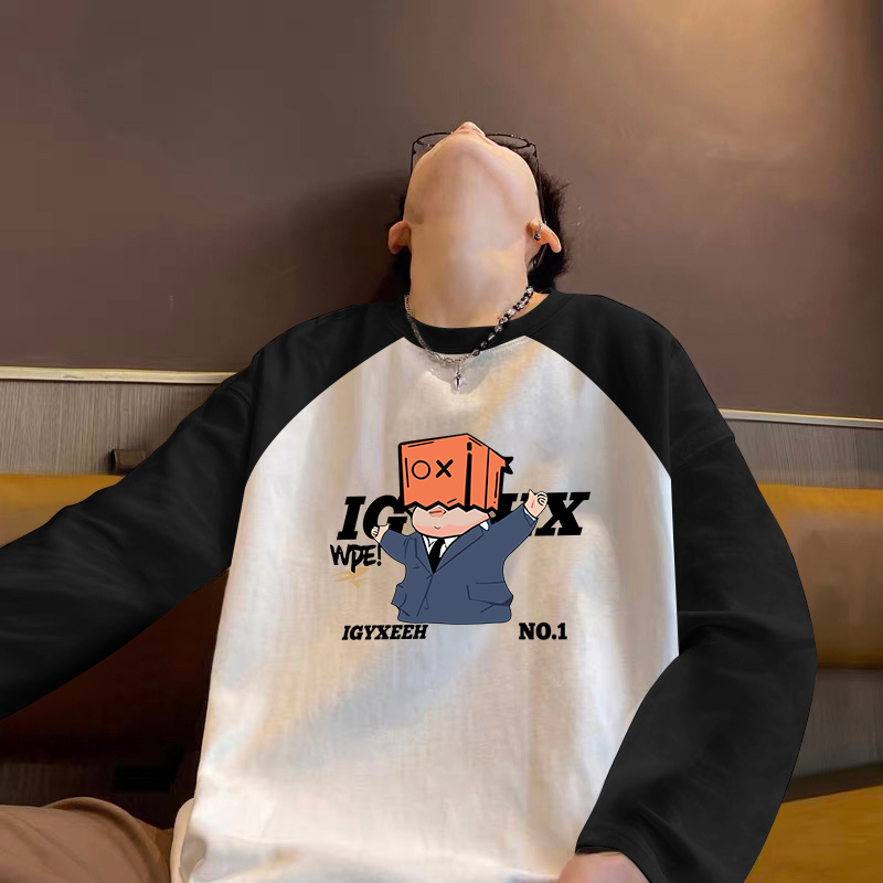 美式 春秋季 高街潮流青少年百搭宽松上衣服潮 t恤男款 纯棉撞色长袖