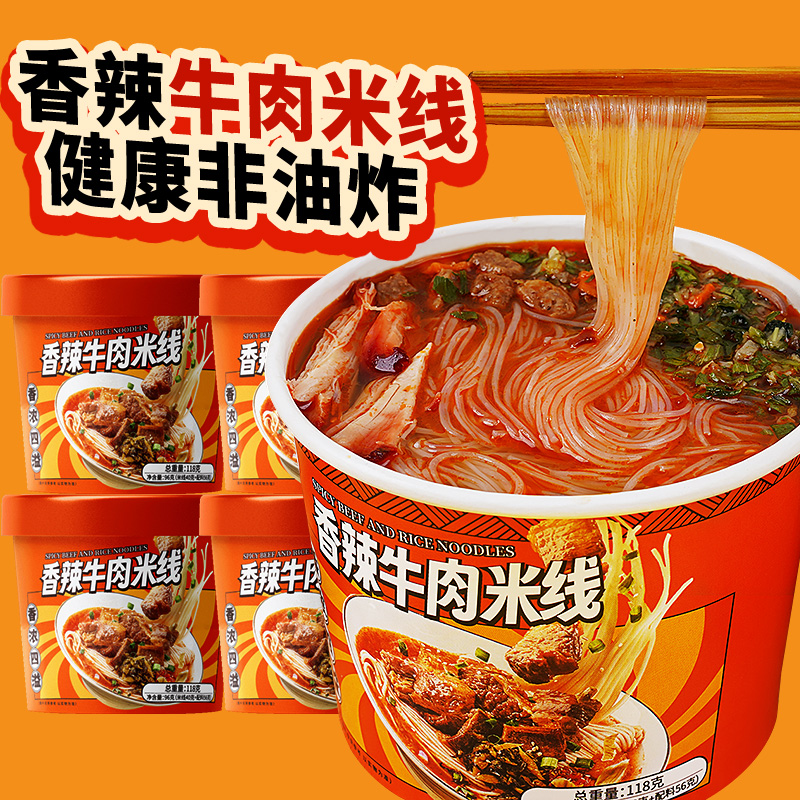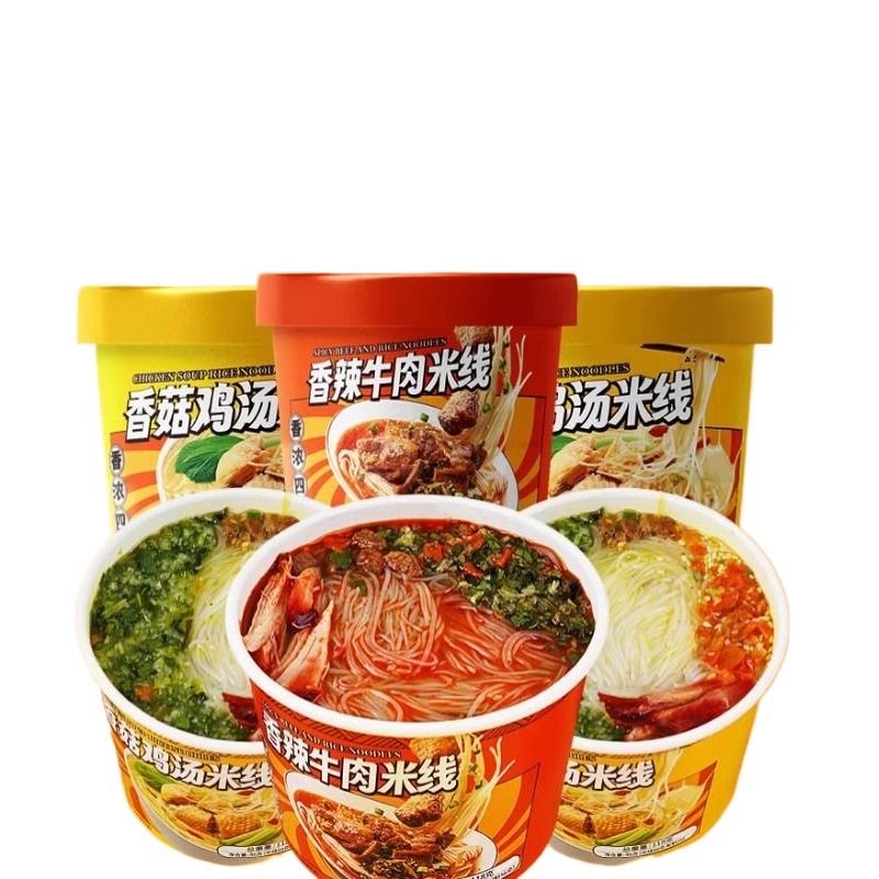 云南过桥米线香菇鸡汤香辣牛肉桶装 米线免煮非油炸速食懒人宵夜
