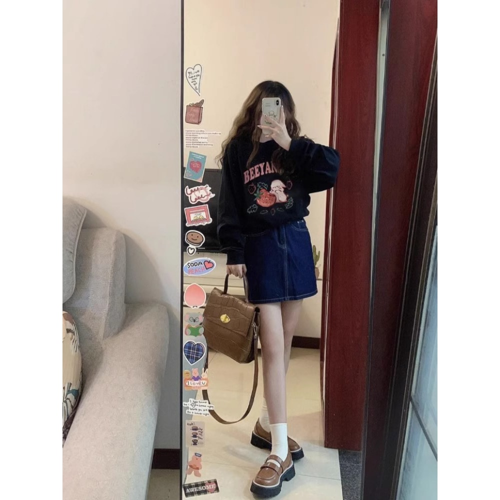 爆款 圆领小个子卫衣女高腰短款 新款 薄款 宽松加绒上衣服 2025春秋季