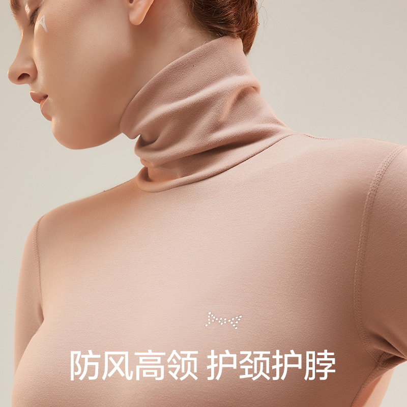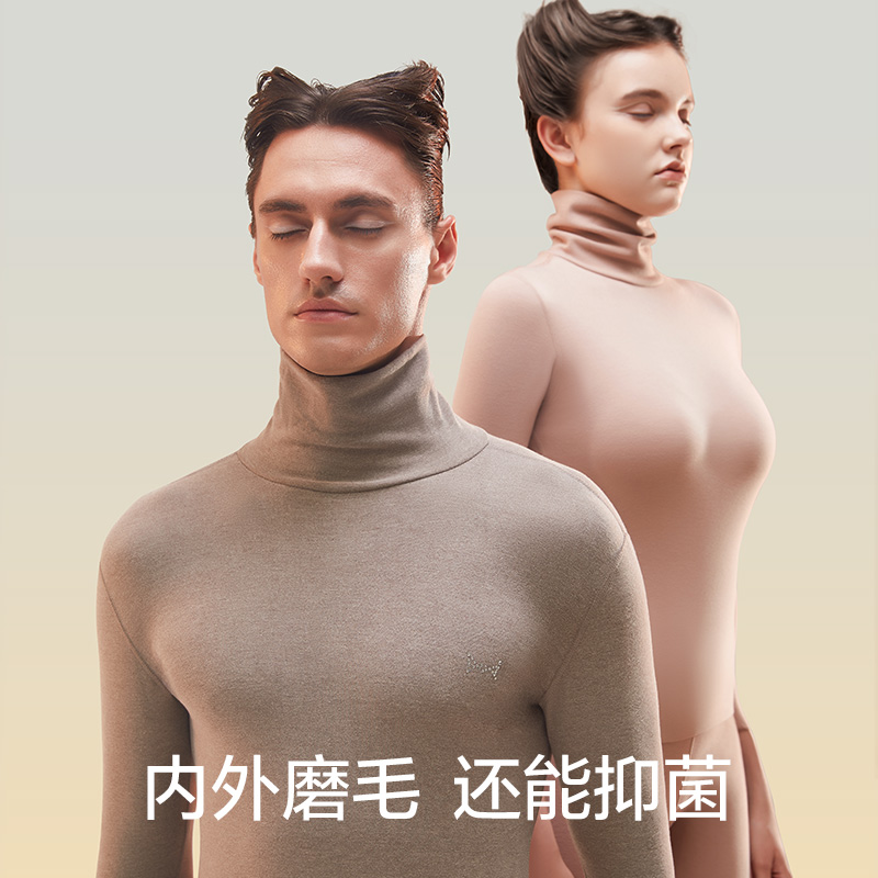 猫人80支德绒发热保暖内衣男女情侣无痕恒温加厚加薄绒高领秋上衣