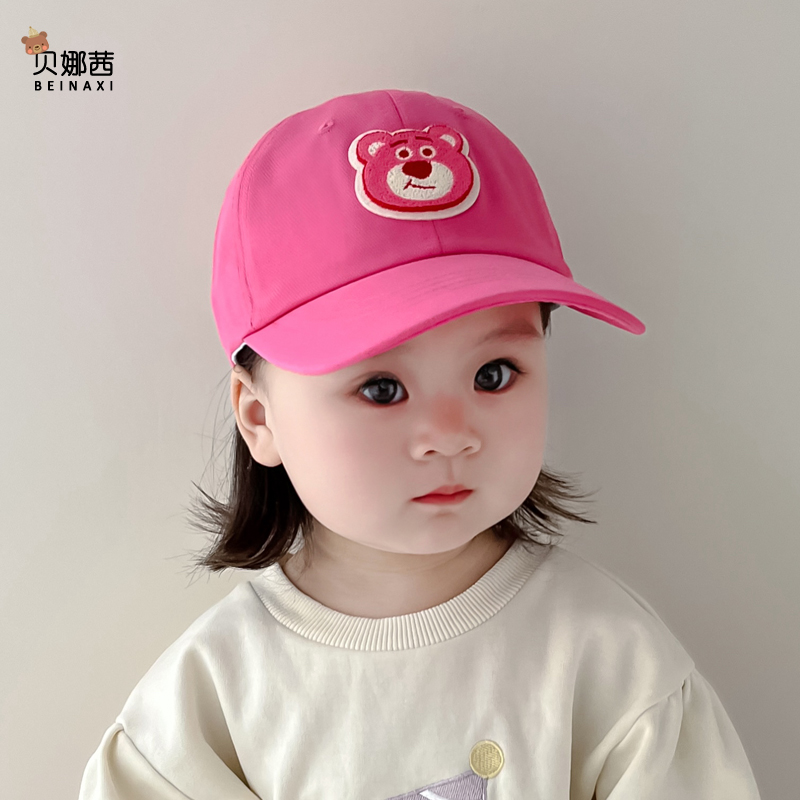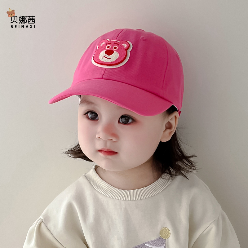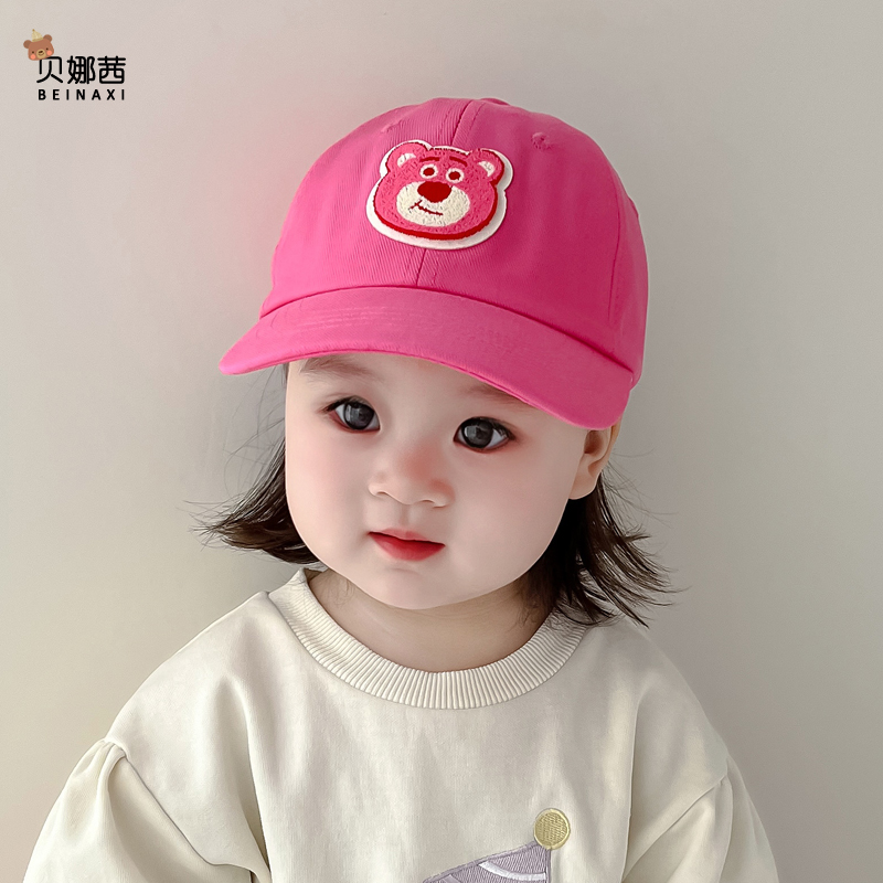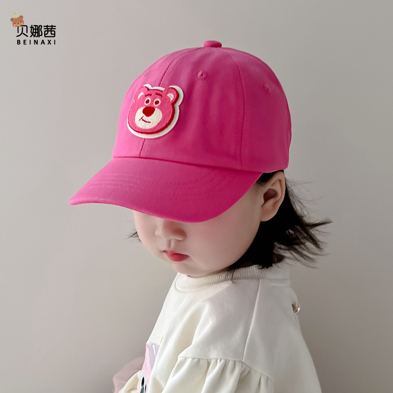 儿童帽子春秋款 遮阳帽草莓熊鸭舌帽 女童女孩可爱棒球帽宝宝秋冬季