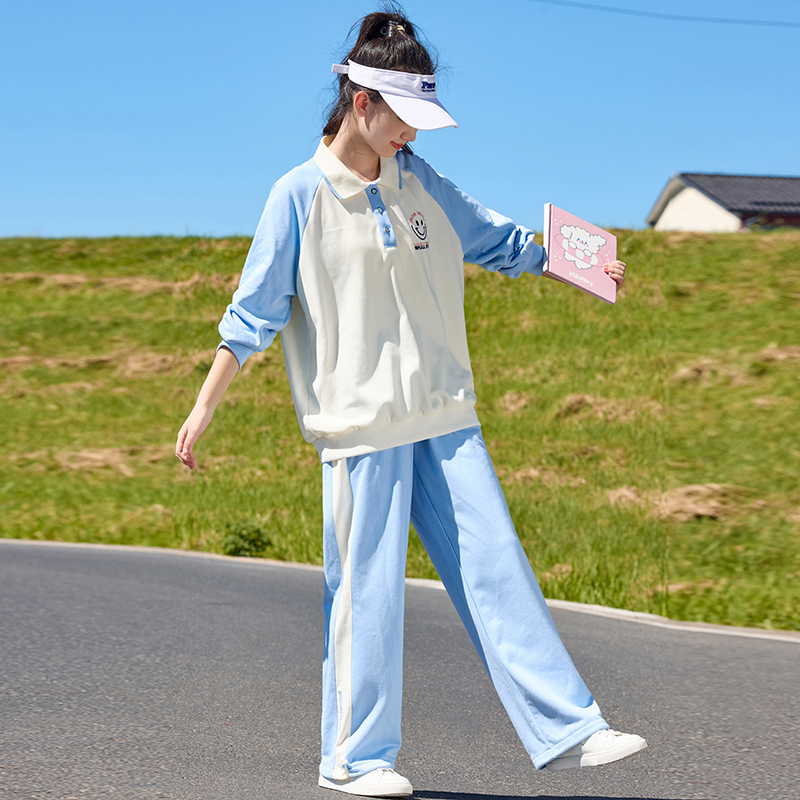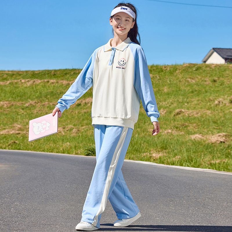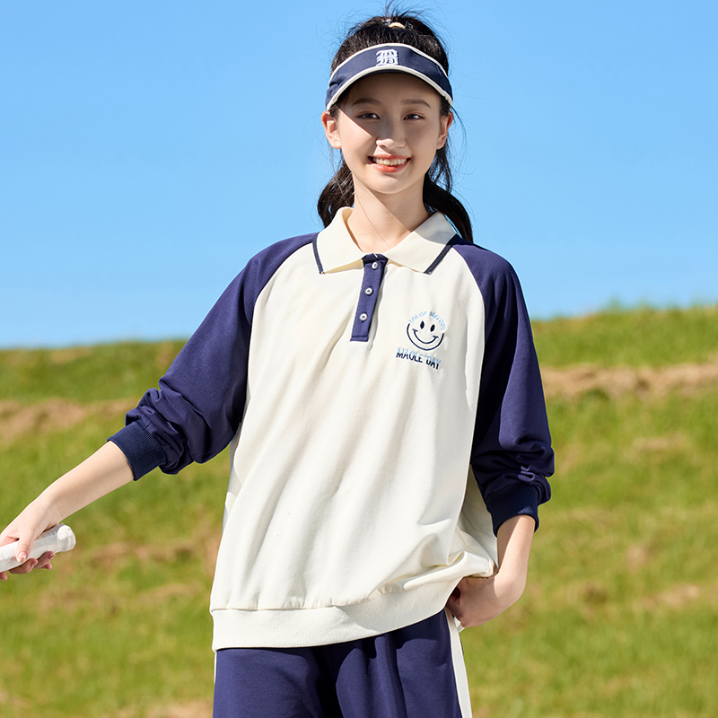 Polo翻领洋气女孩初中学生女童长袖 2025新款 两件套 春装 女大童套装