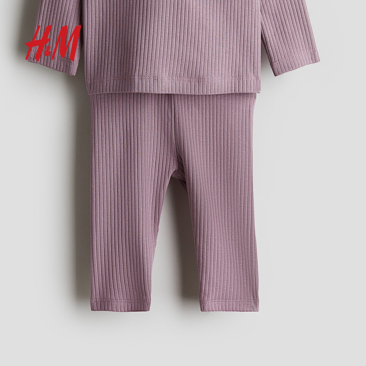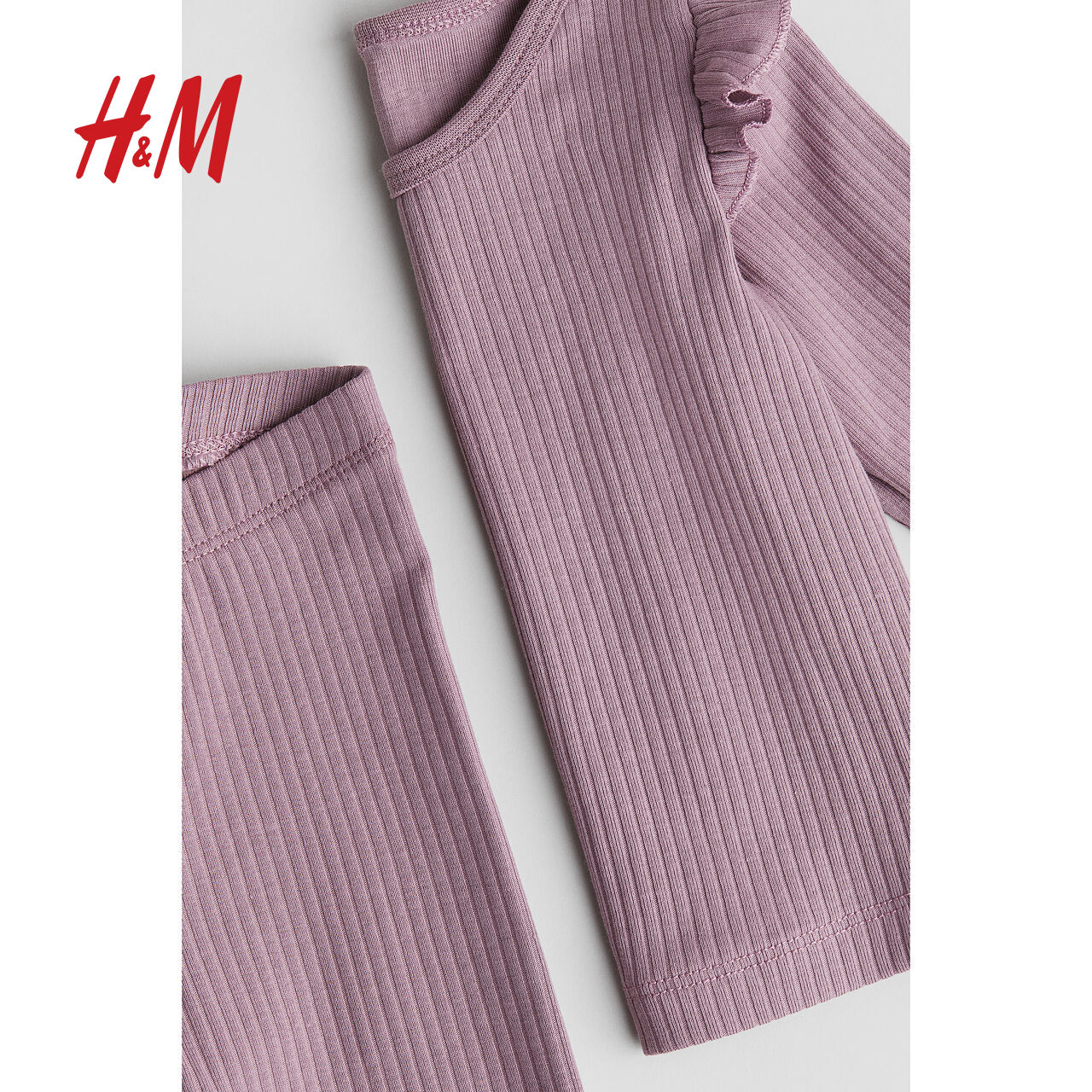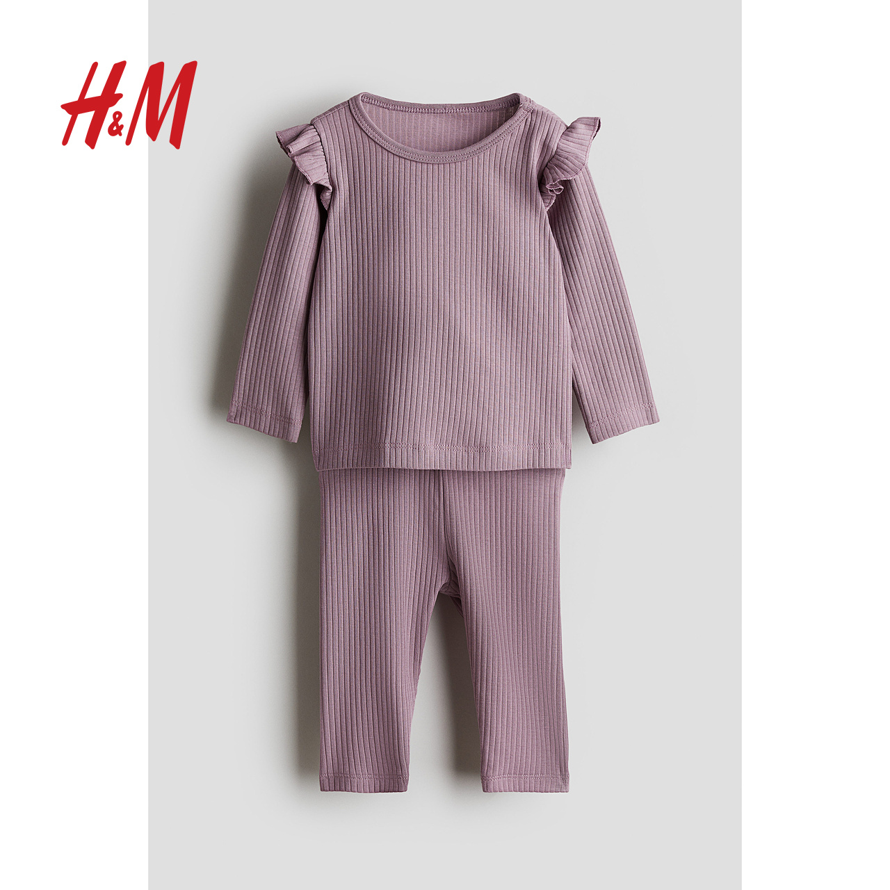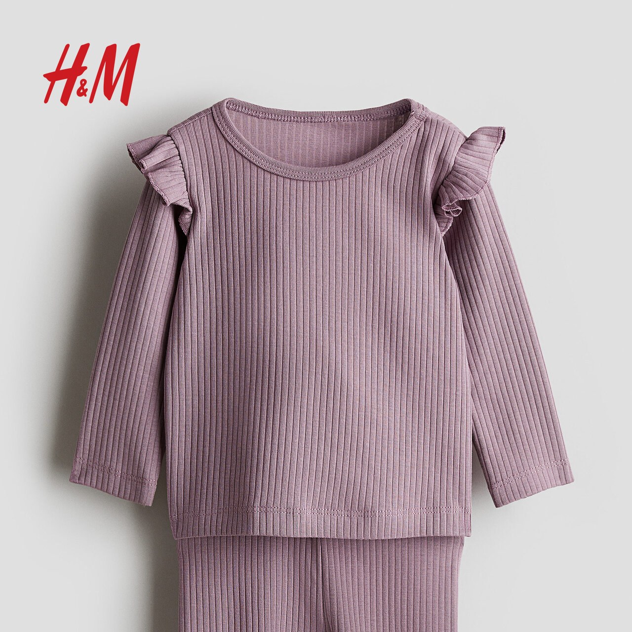 男婴女婴2件式 长裤 套装 罗纹汗布长袖 0867135 秋季 HM童装