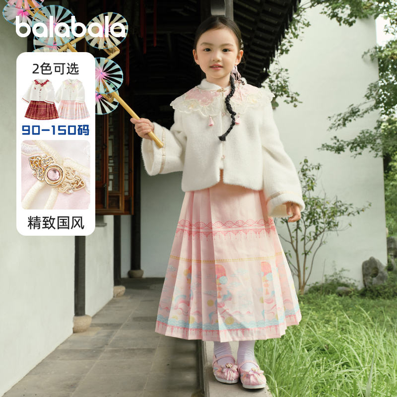 童装 新款 潮 宝宝国风两件套儿童半身裙秋装 巴拉巴拉女童马面裙套装