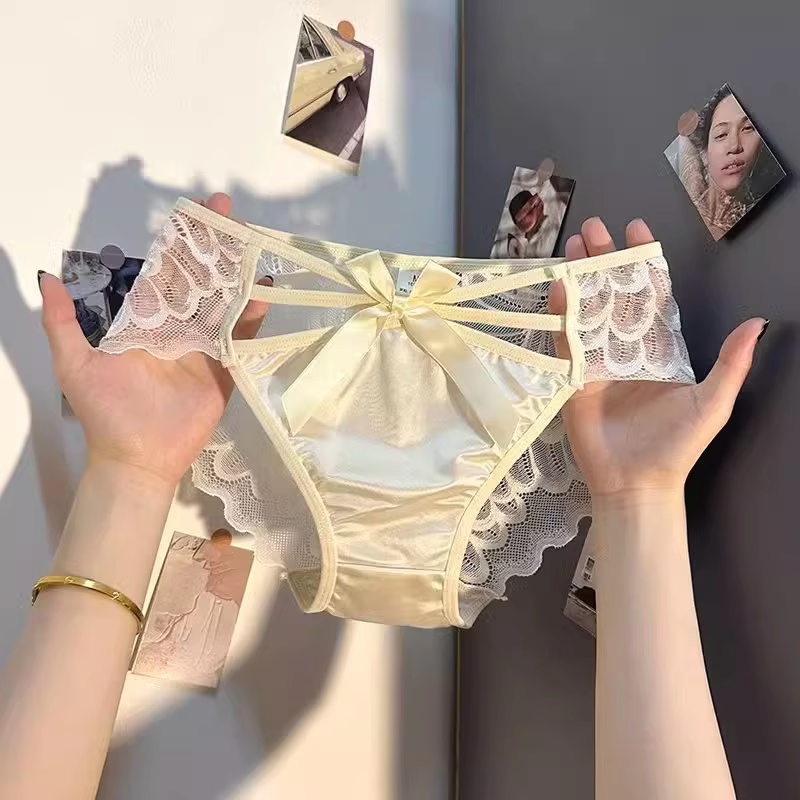 镂空中腰内衣裤 女性感透气夏季 天使之翼蕾丝缎面内裤 高级感三角裤